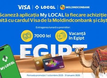 În perioada 1 octombrie 2025 – 31 ianuarie 2026, promoția „Achită cu cardul Visa de la Moldindconbank și câștigă premii” îți poate aduce o vacanță de vis în Egipt pentru întreaga familie sau premii lunare de 7 000 de lei. Vezi regulamentul complet aici.