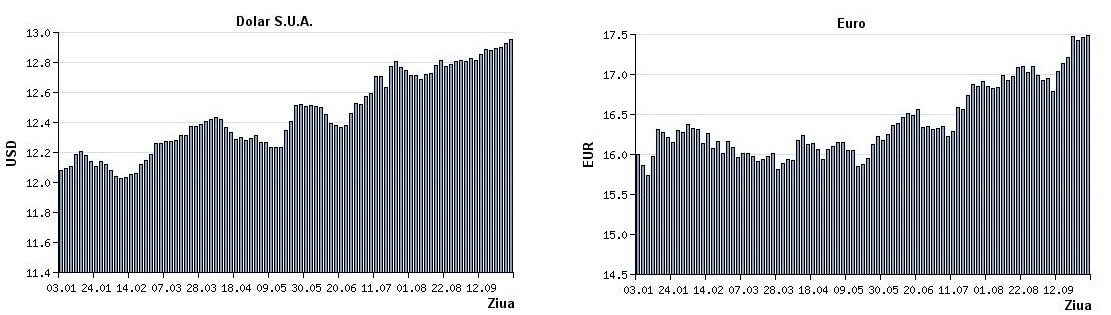 S-a scumpit şi moneda unică europeană, cu 1.5 lei, rata de schimb MDL/EUR fiind la sfârşitul lunii septembrie 2013 17.5 lei pentru 1 euro.